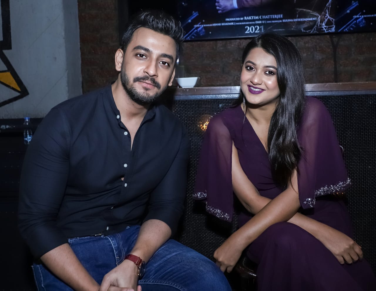 During the first look launch of the movie Bonny Sengupta look dapper in a black shirt paired with a cool blue denims while Anamika stunned everyone as she looked diva in a purple gown.